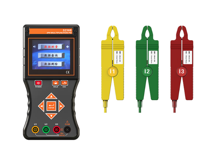 S230B 三相智能相位伏安表是一款專為現場測試的多功能智能儀表,由主機、電流鉗(3把)、測試線(4條)等組成。主機采用3.5寸真彩液晶屏,圖形菜單界面顯示,向量圖指示,一目了然。電流鉗一體化手柄設計,便于操作,非常適用于排線密集的場所。儀表可以在被測回路不開路的情況下,同時測量三相交流電壓、電流、電壓間相位、電流間相位、電壓電流間相位、頻率、相序、有功功率、無功功率、視在功率、功率因數、電流矢量和,判別變壓器接線組別、感性、容性電路,測試二次回路和母差保護系統,讀出差動保護各組CT之間的相位關系,檢查電度表的接線正確與否,檢修線路設備等,為用電檢查人員提供一種安全、準確、便捷的智能儀表。適用于電力、石油化工、冶金、鐵路、氣象、工礦企業、科研院校、計量部門等。尤其適用于電能計費系統及繼電保護系統。