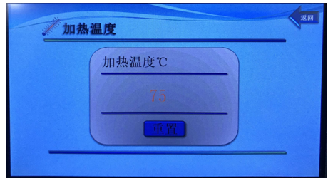 加熱溫度設定界面(圖7),設定所需正當時間,默認75℃。設定好后,按返回鍵自動保存所設定溫度。