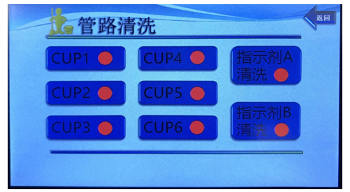 管路清洗界面(圖10),可手動清洗1-6號杯位管路與指示劑管路中的殘存液體。如果管路中進人油樣,需用無水乙醇清洗即可。注意:必須排空管路中的多余空氣,以避免影響加液量,造成影響實驗結果。