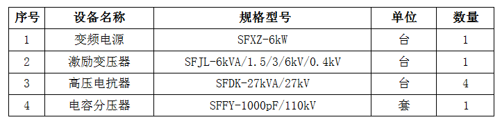 2、10kV開關等電氣設備的交流耐壓試驗,試驗頻率30-300Hz,試驗電壓不超過42kV,試驗時間1min。