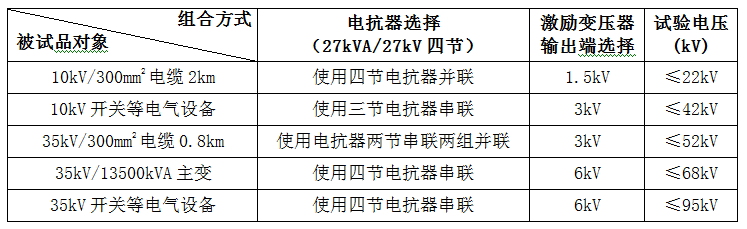 驗證:1、10kV/300mm2電纜2km的交流耐壓試驗,電容≤0.751uF, 試驗頻率30-300Hz,試驗電壓22kV, 試驗時間5min。