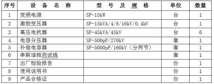 一、   變頻串聯諧振耐壓試驗裝置 SFXZ-270kVA/270kV 滿足試品范圍