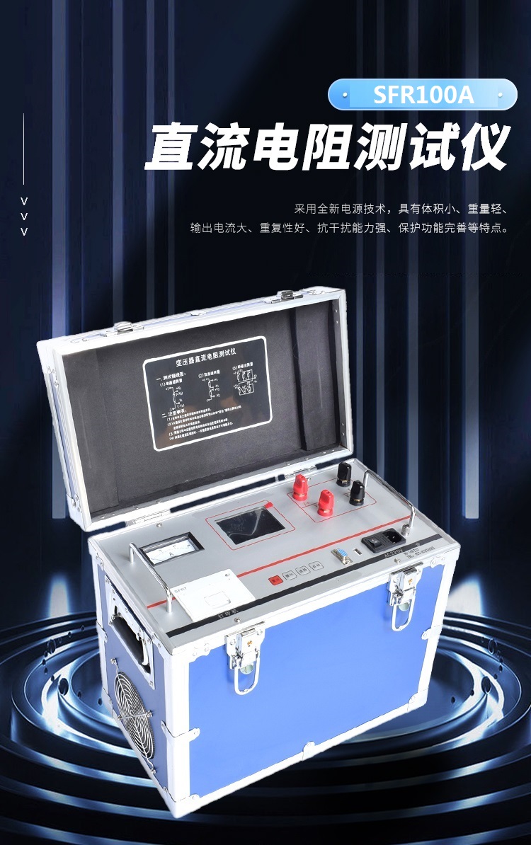 SFR100A直流電阻測試儀主要用于大中型變壓器、發電機、電動機等直流電阻的測量,儀器設置多個電流檔位,滿足多種測量需求。