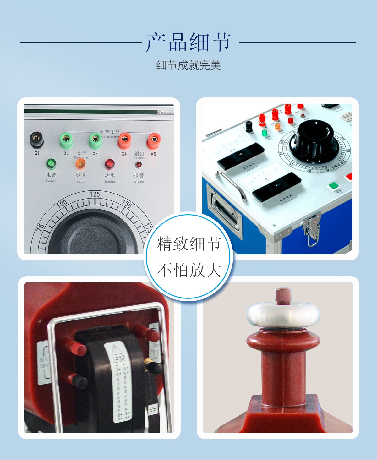 工頻耐壓試驗裝置是成套設備,由多部分組成,其中試驗變壓器(升壓部分),操作臺/箱(控制部分)以及連接線為必配;