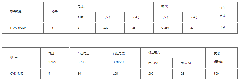 采用了線圈環(huán)氧真空澆注成型,及CD型鐵芯的新工藝、新材料、與其同容量,同電壓的油浸式試驗變壓器相比,具有重量輕、體積小、造型美觀、性能穩(wěn)定、使用攜帶方便、無滲漏油等優(yōu)點。