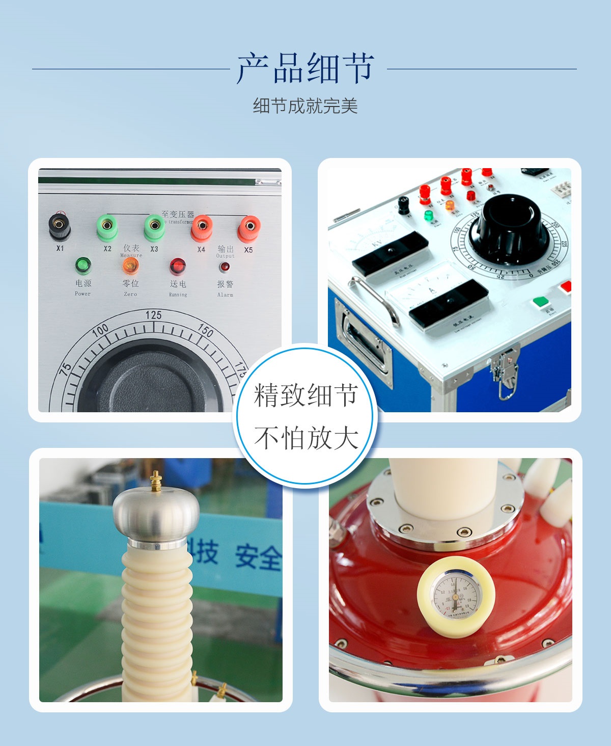 工頻耐壓試驗裝置是成套設備,由多部分組成,其中試驗變壓器(升壓部分),操作臺/箱(控制部分)以及連接線為必配;