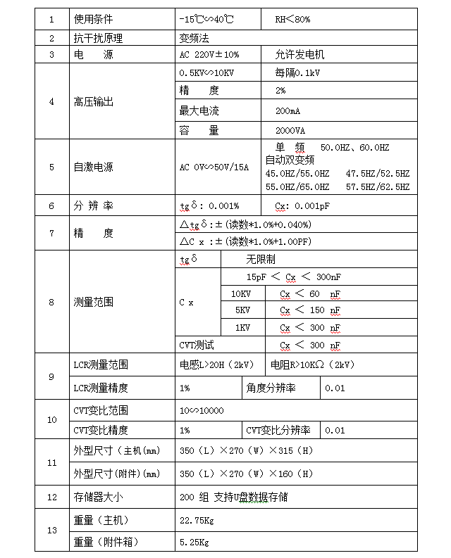 儀器能夠分別使用內(nèi)高壓、外高壓、內(nèi)標準、外標準、正接法、反接法、自激法等多種方式測試;在外標準外高壓情況下可以做高電壓(大于10kV)介質(zhì)損耗。