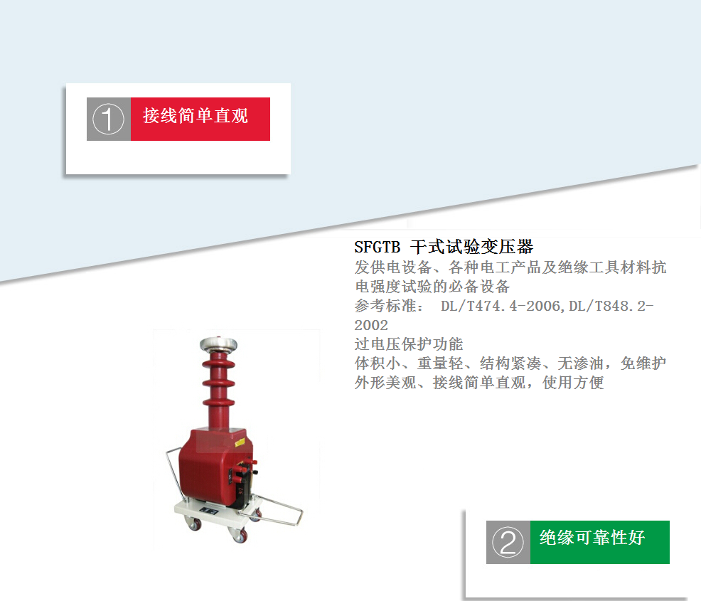 干式試驗變壓器嚴格執(zhí)行國家質(zhì)檢總局規(guī)定細則,按照電力部門和技術(shù)監(jiān)督局的標準,確保產(chǎn)品安全。