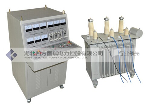 用工頻三相380V電源接入電動控制臺,經(jīng)感應調(diào)壓器調(diào)節(jié)0~400V電壓輸入至試驗變壓器初級繞組,根據(jù)電磁感應原理,在次級繞組得到可調(diào)的工頻電壓。