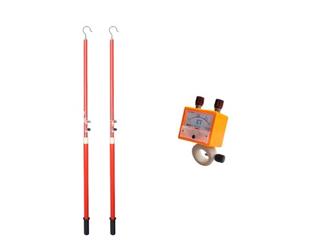 6、特別注意的是在操作時,人體不得接觸核相儀表、高壓連線,人體與核相儀表要保持2.1米的安全距離(將核相儀表放在第二根連接桿上端),接地線要可靠接地。同時人體與高壓連線也要保持足夠的安全距離(2.1米)(請嚴格按照核相器試驗操作規程的要求進行操作核相)。連接兩根測試竿的測試線為普通220V導線,在核相時人體不得接觸或近距離接觸該導線。使用時應將過長的導線用扎帶扎在第一根測試竿上,同時離人體要有足夠的安全距離(請參照高壓電器操作規程),高壓連線也不得與大地接觸。