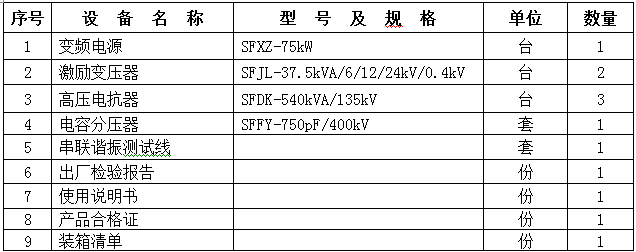 8、設(shè)備的重量和體積大大減少。串聯(lián)諧振裝置中,省去了笨重的大功率調(diào)壓裝置和普通的大功率工頻試驗(yàn)變壓器,而且,諧振激磁電源只需試驗(yàn)容量的1/Q,使得系統(tǒng)重量和體積大大減少,一般為普通試驗(yàn)裝置的1/10-1/30。