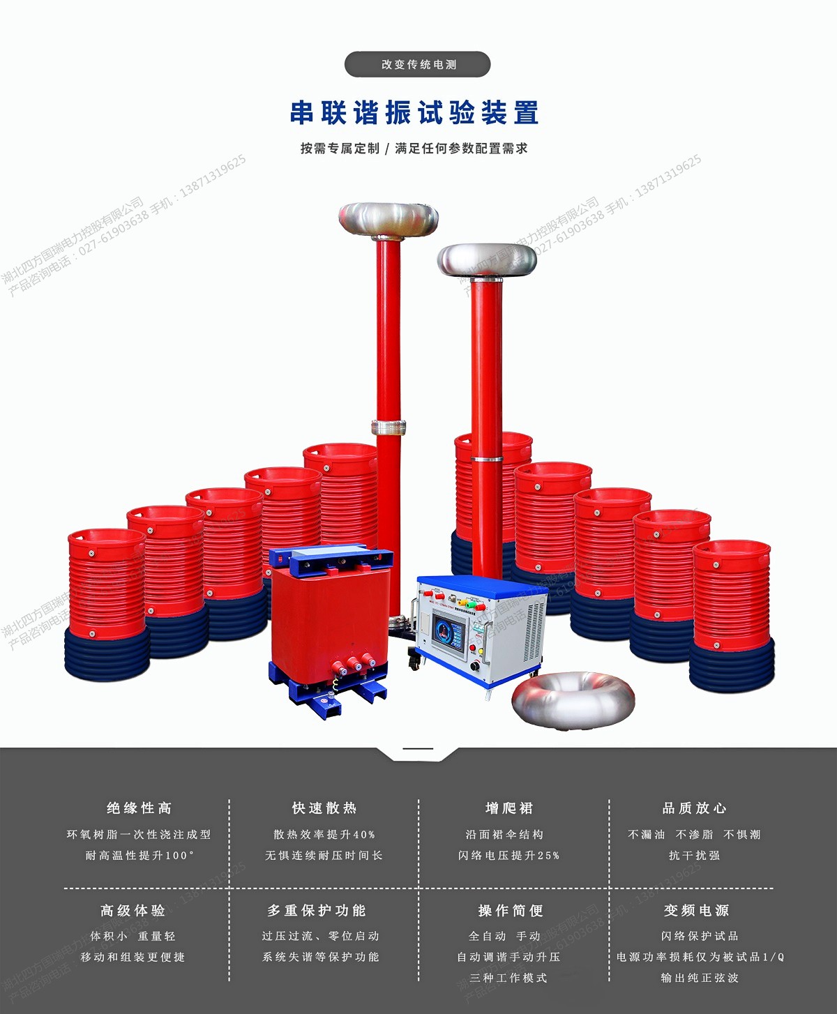 該裝置主要由變頻電源、勵磁變壓器、電抗器、電容分壓器組成。