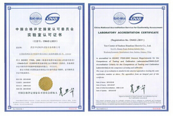 公司試驗中心通過了中國合格評定國家認可委員會(CNAS)的認可,于2009年3月獲得了中國合格評定國家認可委員會實驗室認可證書。因此,公司具備了認可范圍內的對外檢測和校準服務資格。