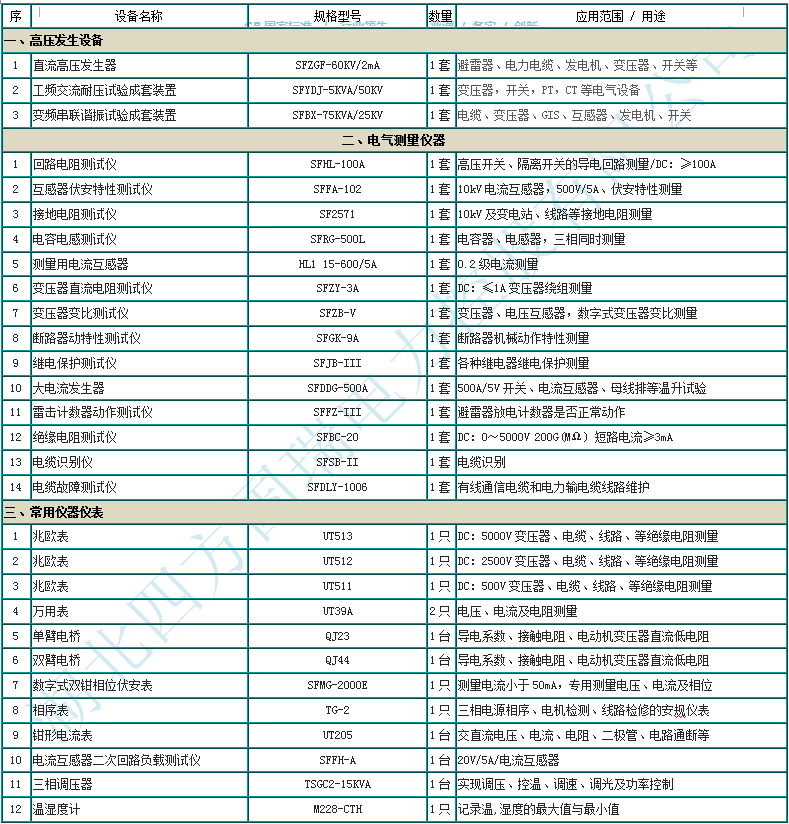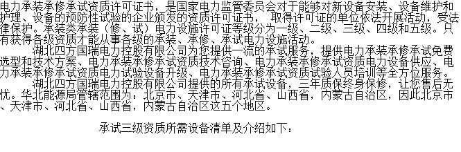 華北局申報(bào)承試三級(jí)資質(zhì)所需設(shè)備清單