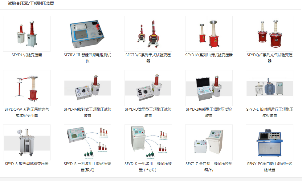 試驗變壓器、工頻耐壓裝置、綜合試驗臺、高壓耐壓設(shè)備、串聯(lián)諧振、承試設(shè)備選型、變壓器測試儀器、繼電保護(hù)測試儀、斷路器測試、開關(guān)測試儀器、避雷器測試儀器、接地、絕緣電阻測試儀器、互感器檢測及計量儀器、SF6、油化測試儀、蓄電池檢測儀無功補(bǔ)償電容檢測。