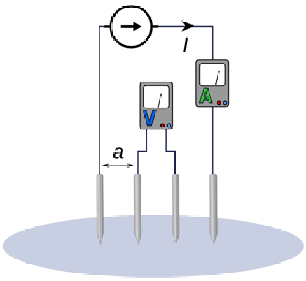 四個小尺寸的電極以相同的深度和相等的距離(直線)被驅入地球,并進行測量。