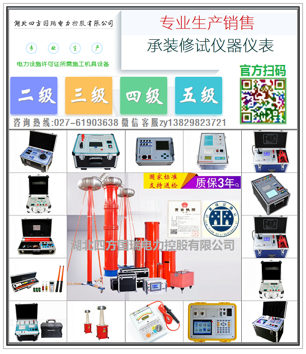 四方國瑞電力是國內專業的電力承裝(修、試)資質及電力承試設備研發生產企,專業針對不同電壓等級的試驗需求,定制不同配置的電氣試驗產品。