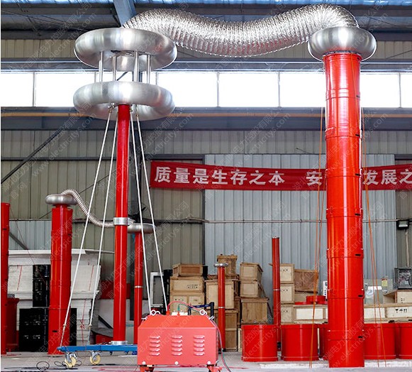 通過調節變頻控制器的輸出頻率,使得回路中的電抗器的電感L和試品電容C發生諧振,諧振電壓即為試品上所加電壓。通過調頻控制器提供供電電源,試驗電壓由勵磁變壓器經過初步升壓后,使高電壓加在電抗器L和被試品CX上,通過改變調頻控制器的輸出頻率,使回路處于串聯諧振狀態;回路的諧振頻率取決于被試品電容CX和電抗器的電感L,調節變頻控制器的輸出電壓,使試品上高壓達到所需要的電壓值。