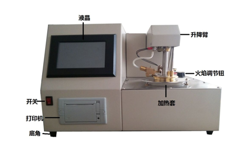該儀器在國家標準規定的條件下,把試樣裝入試驗杯,對裝有試驗油的試驗杯加熱,產生的石油蒸氣與周圍空氣形成的混合氣體在與火焰接觸發生閃火時的最低溫度作為閃點。