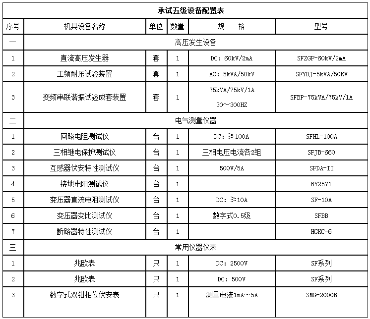 承裝(修、試)承試類五級承試資質設備電力設施許可證所需施工機具設備選型