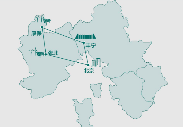 張北、康保換流站作為送端直接接入大規模清潔能源,豐寧站作為調節端接入電網并連接抽水蓄能,北京站作為受端接入首都負荷中心。